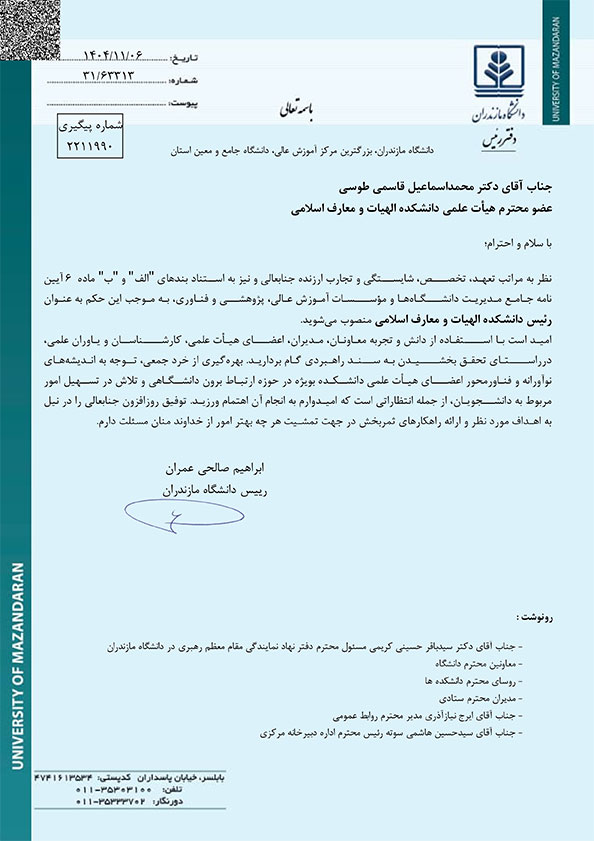 طی احکام جداگانه از سوی رییس دانشگاه: